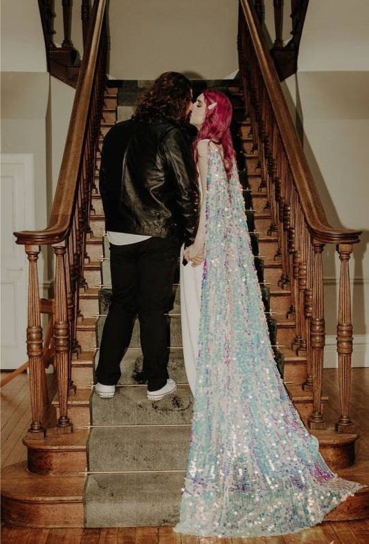 Sequin Cape / Iridescent sequin bridal cape / Rainbow wedding cape / Pastel sequin bridalwear / Pink bridal cape