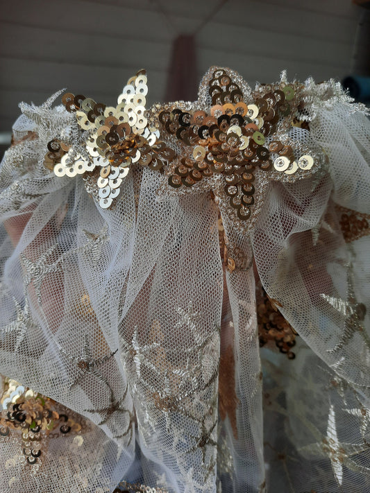 Gold star veil / Veil with sequin flowers / Alternative bridal veil / Golden stars veil / Evening wedding veil