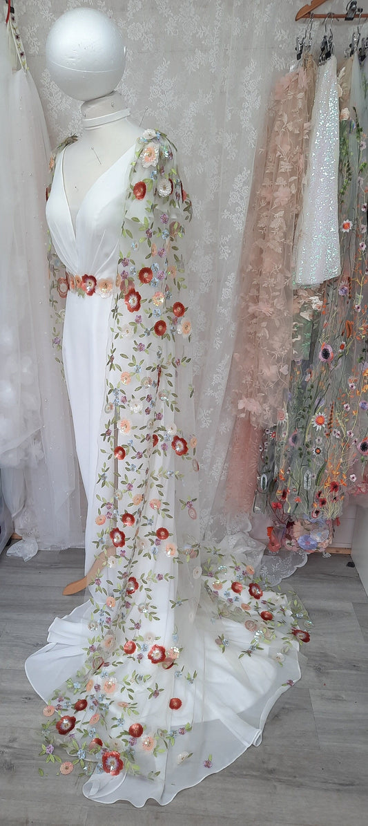 Floral sequin bridal cape / Back -reveal bridal cape / Woodland wedding Cape / 'Ottilie' fabric