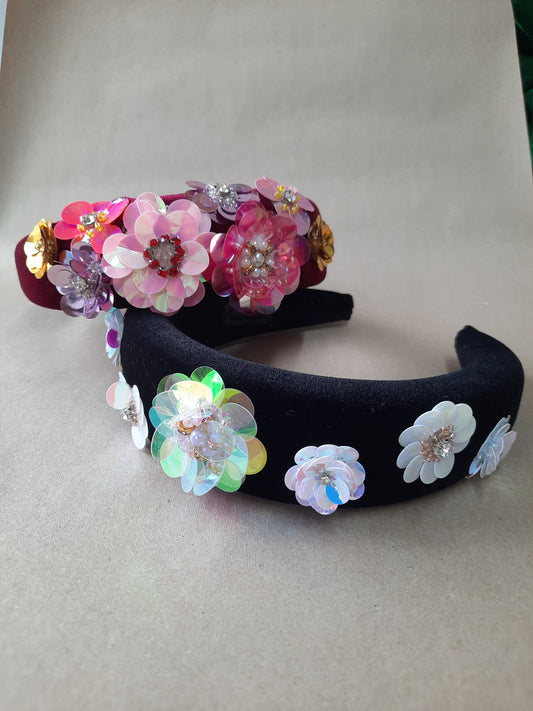 Floral velvet headband / sequin headband / sequin flowers alice band / colourful headband / floral headband