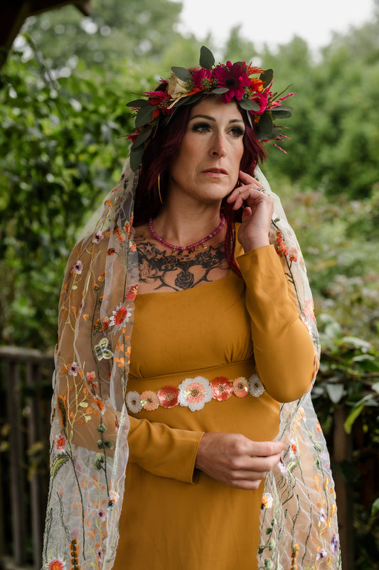 Orange wildflower veil / veil with embroidered flowers / alternative bridal veil / woodland wedding veil / floral wedding veil